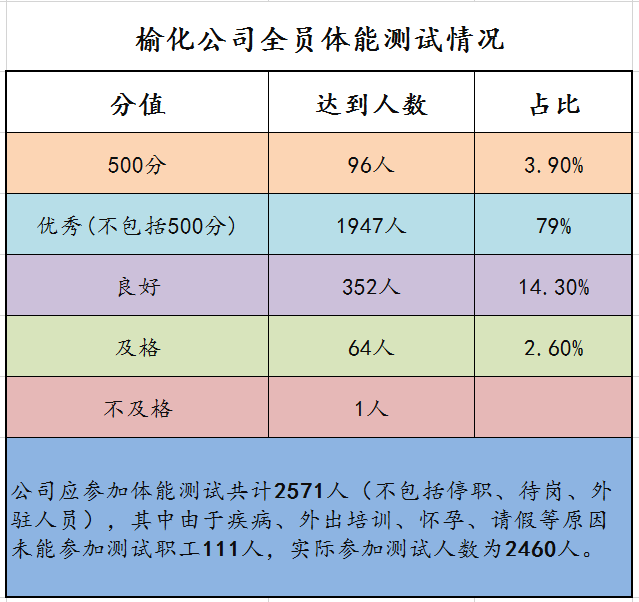 体能测试虽已结束,但健康生活的大门已经叩响。科学锻炼、强身健体,榆化人正以健康生活的新理念展开健康榆化、美丽榆化的新图景。(张坤)
