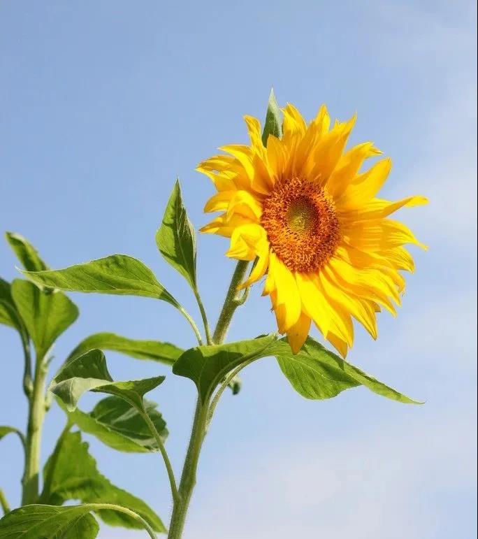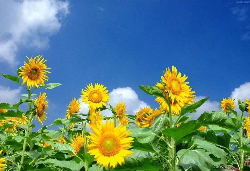 忽然,我眼前一亮,不远处竟然有一株盛开的向日葵花。 这株小小的向日葵,不过几寸来高,它纤细的毛茸茸的茎杆上,撑开四片翠色透亮的嫩叶,顶上擎着的一朵小花正开得旺盛。宛如一株让人心生爱怜的花儿。我一阵欣喜,不禁蹲下来凝神细看。金黄凝滑的花瓣,滚着几滴晶莹的露珠,如水洗过般光洁;娇妍簇拥的花蕊,纤弱柔美,亭亭玉立;凉风拂过,花枝微颤,还能嗅到一抹淡淡的馨香。