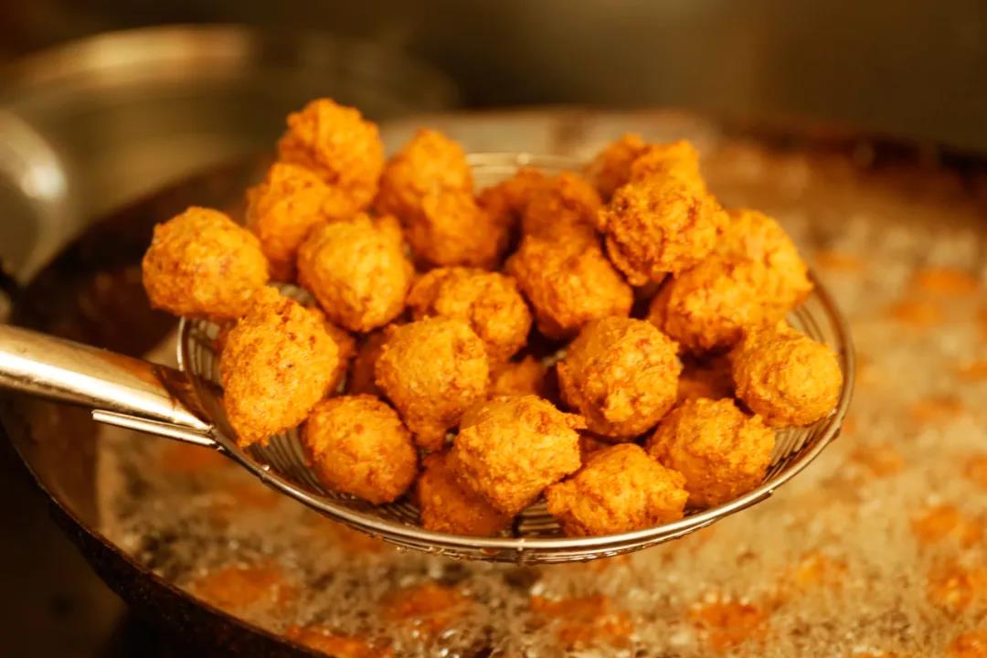 似火焚身披坚甲,滚珠落圆满珍馐。