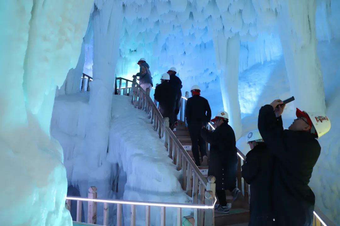 由于时间紧张,我们在导游的安排下,四个人一组乘坐索道缆车上山,随着缆车的行进,向外望去,郁郁葱葱的树木和跌宕起伏的峰峦尽收眼底,一种“一览众山小”的快感突涌而来,大约二十几分钟后到达玉皇顶索道站,随后跟随着导游来到鸳鸯玻璃栈桥,它横架于悬崖绝壁之上,怎一个“险”字了得。来之前就曾了解到云丘山有处神来之笔“冰洞群”,甚是向往,今日终于亲眼看到云丘山冰洞群的真面目,洞内寒气逼人,有冰柱、冰笋,形态各异,美伦美奂。据说此冰洞群是夏天结冰,冬天融冰,有神奇的自我修复能力,是世界三大冰洞奇观之一。随着蜿蜒曲折的石阶小路,一股雾气扑面而来,这里就是云丘山不是仙境胜似仙境的神仙峪了,溪水潺潺、“仙气”缭绕,大家在此争相取景,好不热闹。