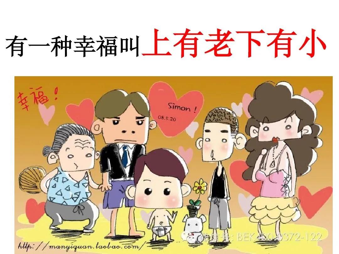 上有老下有小,不是累赘,不是艰辛,而是一种力与美的组合。因为在你困难时,在你最需要帮助时,在你由于工作无暇顾及家庭时,有父母为你挺身而出,为你承担起照顾孩子,照顾家庭,为你的生活排忧解难,让你可以安心工作;在你疲惫时,有孩子天真灿烂的笑容能够为你放松心情;在你痛苦时,有全家人为你共同承担;在你开心时,更有三世同堂共同分享。