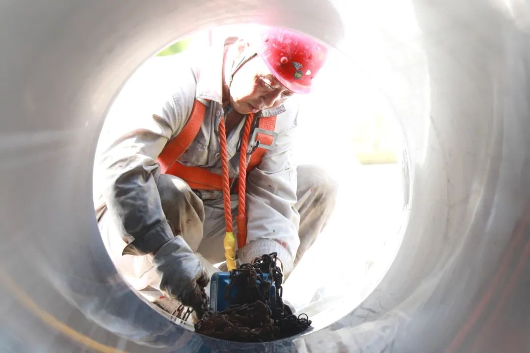 在烈日下、在管架上、在设备旁,他们满身油污,脸上流淌着汗水,手拿扳手,用心拆检着一个个阀门、一台台设备,用心拧动着每一个螺丝,他们及时完成工艺清理、底料填装、设备安装、管路连接等工作;他们穿着包裹严实的工作服,带着护具用精湛的技术,用堪比绣花的功夫,焊接着每一道焊缝,连接着每一处管道,焊花在阳光下飞溅,汗水在背浃上流淌,在“焊”水中让一道道焊缝天衣无缝;检修现场是他们的主战场,他们是这次年度大检修的主角。他们不怕苦、不怕累,发扬精益求精的工匠精神,按照职责分工高效率、高质量的完成检修任务。他们用激情与汗水践行着一个维修工的使命。