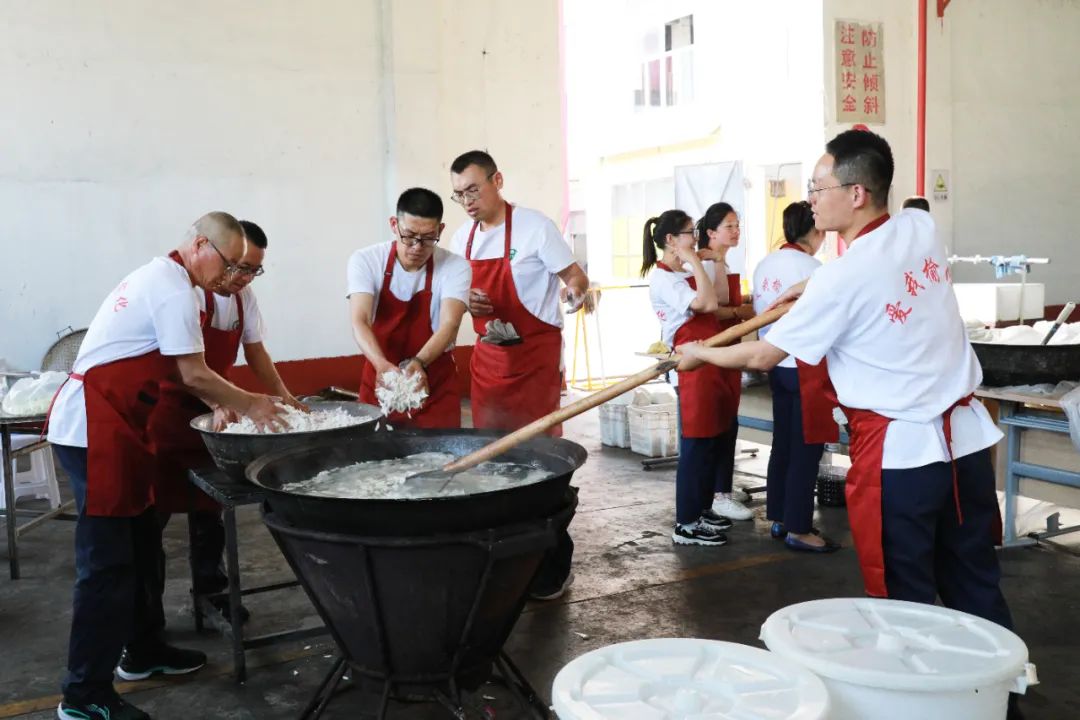 他们,在炉火旁、在面案边,用心洗菜、用力压面,精心调配各种小菜,只为能让辛苦劳作的工友们吃上可口美味的饭菜。他们忘记腰酸背痛,忘记炉火高温,在柴米油盐中、在酸甜苦辣中,用心用情干着后勤保障工作,用香甜的西瓜,美味的饭菜为奋战一线的工友送上了别样的关怀。