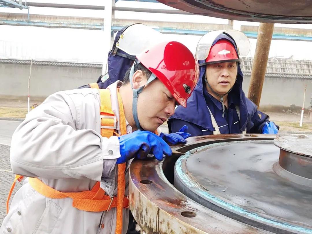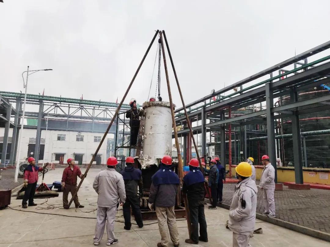 上午9时,在分厂厂长岳伟鹏的亲自指挥下,石墨冷却器维修工作开始有条不紊的进行,电仪、焊、钳工分工明确。因为第一次检修石墨换热器,对内部结构不是特别了解,所以检修工作相当于是摸索中前进,对不懂的问题及时请教厂家技术人员或是查找相关资料。2月29日22时,经过打压试漏,终于完成对换热器的拆检维修,目前运行正常。在整个维修过程中,分厂全体干部紧紧盯守安全、票证、质量、进度四个工作要求,敢于创新,攻坚克难。