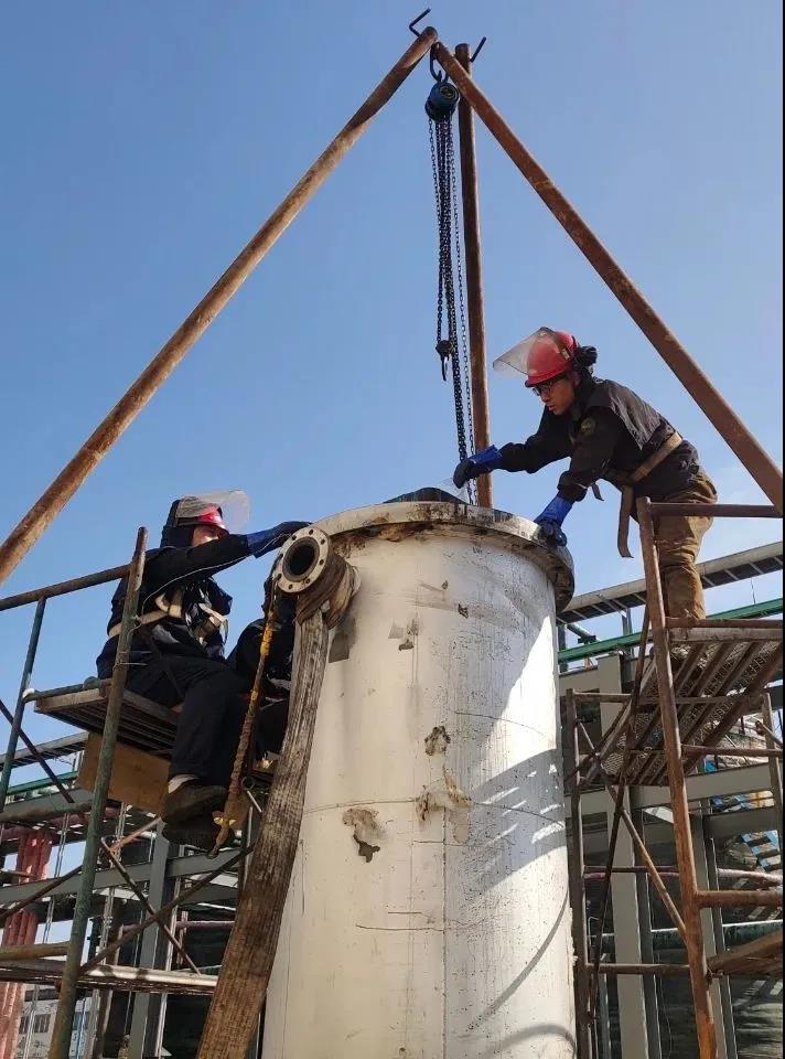 事无巨细,平凡小事中更显劳动本色。在新罐区安装的时候,为了尽早的让罐区投入使用,检修工段的师傅们每天加班加点,没有一天能够早早回家,领导们都在现场忙碌指导。记得有天工作中,天气不好下起了雨,师傅们没有因为天气恶劣停下手中的活。有的披个塑料袋,有的啥也没披,就在雨中继续工作。雨水汗水打湿了他们的衣裳,然而大家却苦中作乐,你看看我,我看看你互相打趣鼓劲,保质保量地按时完成了任务。