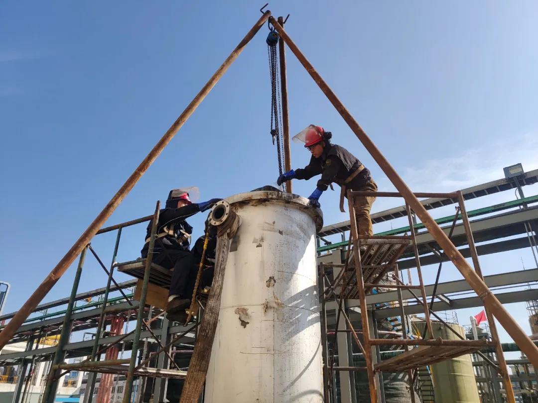 在去年新凉水塔项目进行总管碰头时,从早上7时开始,岳师傅就带领着安装的每一位干部员工,大到每一台设备安装,小到每一颗螺丝的紧固都认真检查。细节决定成败。在炎炎的夏日下,室外的温度高达40度左右,在管架上工作的师傅们,没有任何阴凉可遮挡炎热。身体犹如火炉烧烤一般的炽热,汗水顺着脸颊滴落在管架上,工作服已经湿了一片又一片。环境上的困难,工人师傅们没有一人叫苦叫累,他们默默地擦掉脸上的汗水,继续地工作着。热爱本职工作,才能立足本职岗位创造佳绩,这是成就事业的前提与思想基础。
