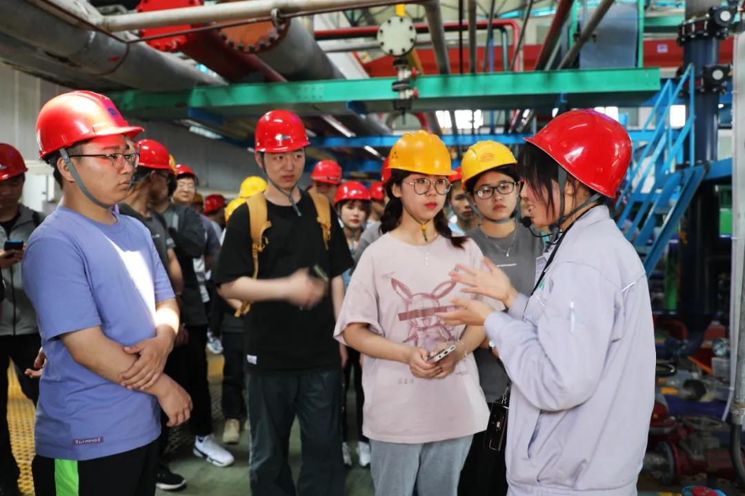 公司组织学生们进入电化厂、树脂二厂生产车间进行参观学习,分厂技术员结合生产系统实地讲解了烧碱和聚氯乙烯生产工艺和设备,并在参观结束后组织学生们在五楼会议室观看企业宣传片。公司先进的生产工艺、自动化生产系统、优美的厂区环境吸引学生们驻足参观并不断提问,深刻感受到榆化作为现代化化工企业的独特魅力。