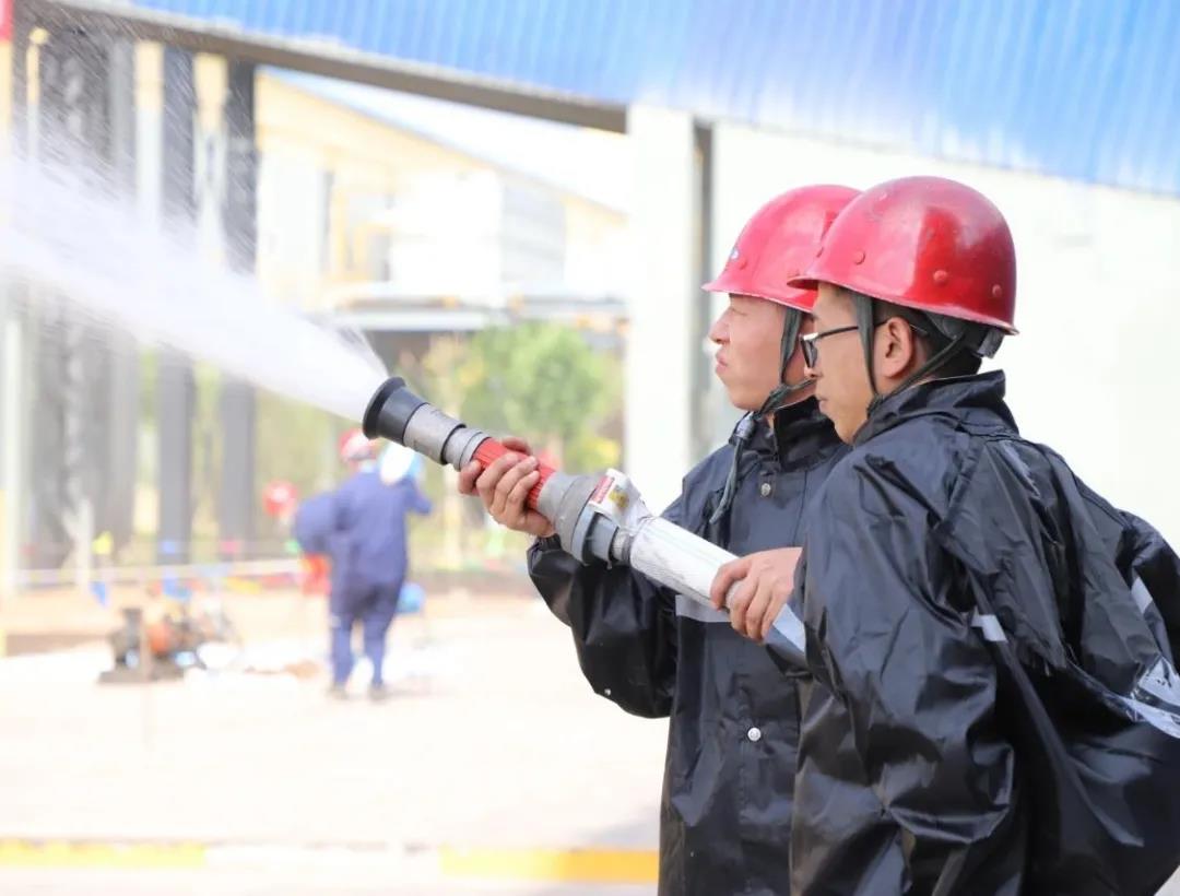 应急演练中,安全科科长冯东对参演人员详细讲解了灭火器的正确使用方法、防化服和空呼的正确佩戴、各类消防器材的正确使用方法及火场逃生和自救的相关知识。大家按照应急演练方案要求,开展实地演习,模拟火灾事故现场进行应急演练实操活动。