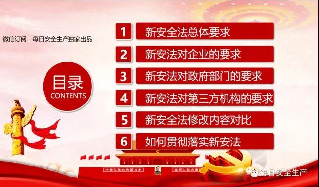 新《安全生产法》强调企业必须遵守本法和其他有关安全生产的法律、法规,加强安全生产管理,建立健全全员安全生产责任制和安全生产规章制度,加大对安全生产资金、物资、技术、人员的投入保障力度,改善安全生产条件,加强安全生产标准化、信息化建设,构建安全风险分级管控和隐患排查治理双重预防机制,健全风险防范化解机制,提高安全生产水平,确保安全生产。这一条例更加法制化、规范化,为构建安全提供了依据,为生产和发展提供了保障。