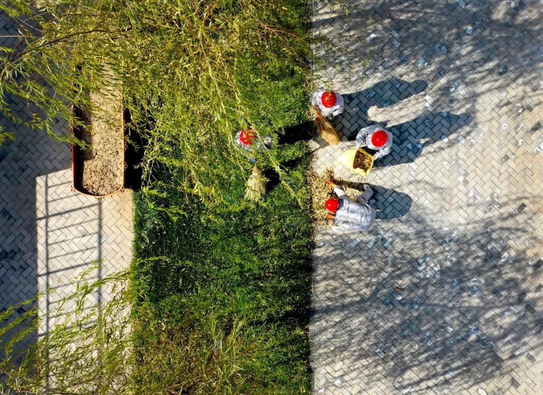 卯时:天空刚刚亮起来,即将下大夜班的榆化员工已经拿起扫帚开始清扫自己的卫生区域。他们扫得那么认真,那么仔细。清扫路面的声音与机器的轰鸣声交相辉映,弹奏着专属于榆化的和谐曲。他们用自己的双手维护着厂区的清洁与美丽,劳动创造美是此刻最美的写意。