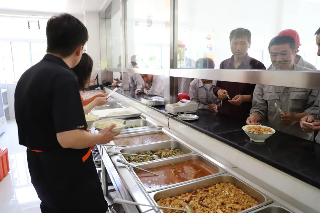 午时:一线白班人员轮流走进职工餐厅,干净舒适的就餐环境,色香味俱全的饭菜不仅使人食欲大增,而且心情也变得异常美丽,身心也得到了短暂的放松。他们有序就餐,文明用餐,是“光盘行动”的践行者。十一点四十五分,下班的音乐响彻厂区上空时,常白班人员结束了上午的工作,他们搭乘榆化专属公交谈笑风生回家去。中午下班放学高峰期,开车的每一个榆化人自觉遵守交通规则,自觉礼让行人,榆化素质在此升华。