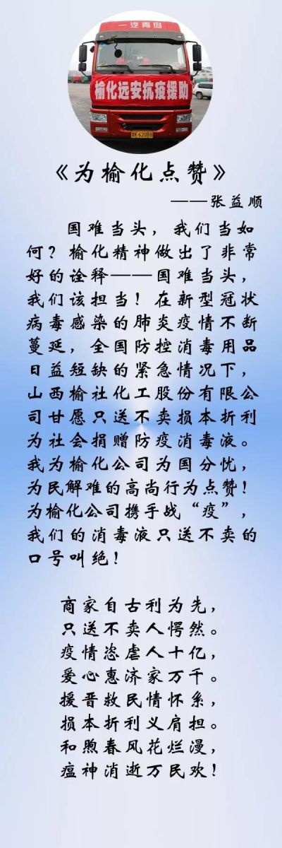 亥子更替,新元伊始,新型冠状病毒突袭荆楚大地,蔓延波及全国。为了鼓舞抗“疫”斗志,坚定抗“疫”信心,榆化儿女用手中的笔和铿锵有力的声音,一起为这场生命健康保卫战助力!