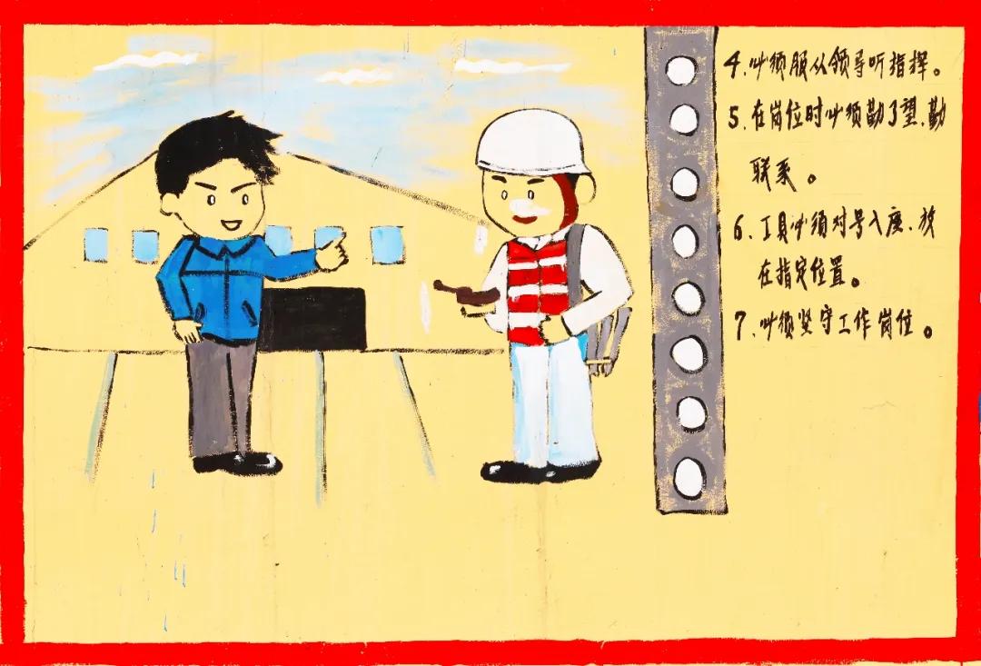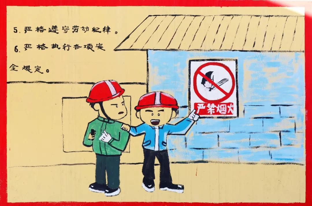 围墙上、标示牌上,可爱的工友们徒手绘就了一幅幅生动、形象的宣传画,书写了一行行充满朝气与活力的宣传标语,画里画外、字里行间,是关切、是叮咛、是警示、是公司的关怀、是家人的期盼。