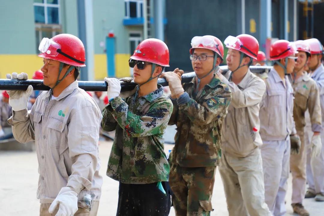 劳动是工人的本色,大家不畏高温、汗流满面、团结协作的场面,是榆化艰苦奋斗精神的最好诠释。电缆敷设是项目建设的重要工程,也是公司不断发展的一个重要标志,每拉一次电缆,都是在证明榆化的发展又向前跨进了一大步。(张云 张坤)