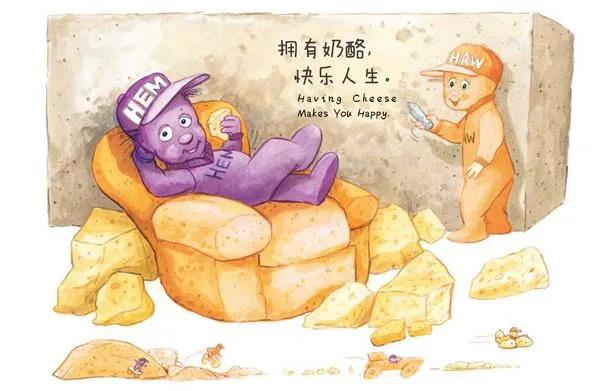 这本书讲述了四个角色,两个小矮人和两只小老鼠,在得到既有财富(奶酪)时的享受,以及奶酪不翼而飞时所不同的反应和表现,故事简单不难理解却表现出人性最真实的一面。在生活中你又是人物中的谁呢?面对不理想的一切你是固步自封,还是会随时改变?