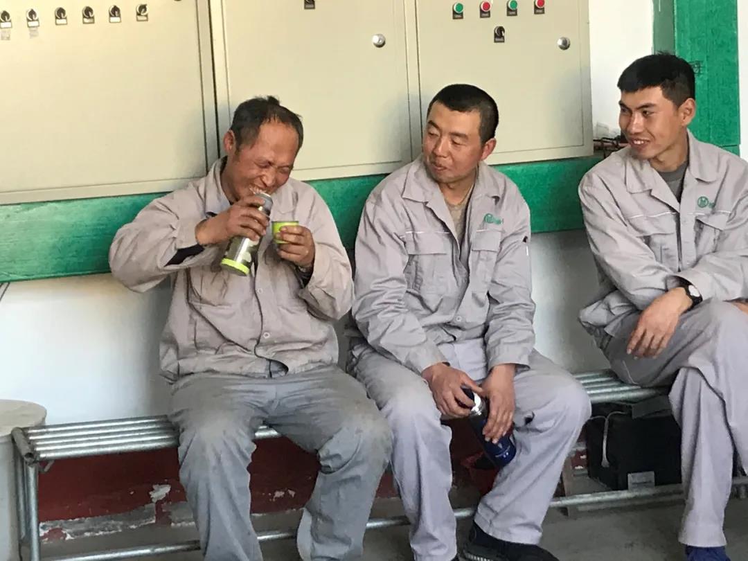 临近下班,检修人员侃谈中自娱自乐!