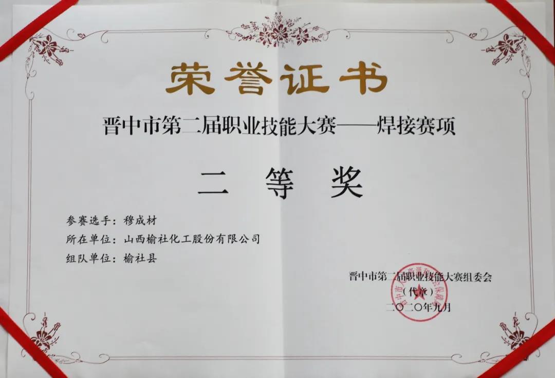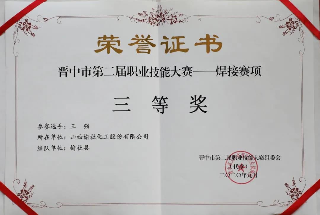 弘扬工匠精神,培育技能人才,在人才兴企的时代浪潮中,榆化公司不断加强技能培训,专注于提升员工职业技能,培养出一批优-秀的专业技能人才。在晋中市第二届职业技能大赛中,公司员工穆成材、王强分别获得焊接赛项二等奖和三等奖。