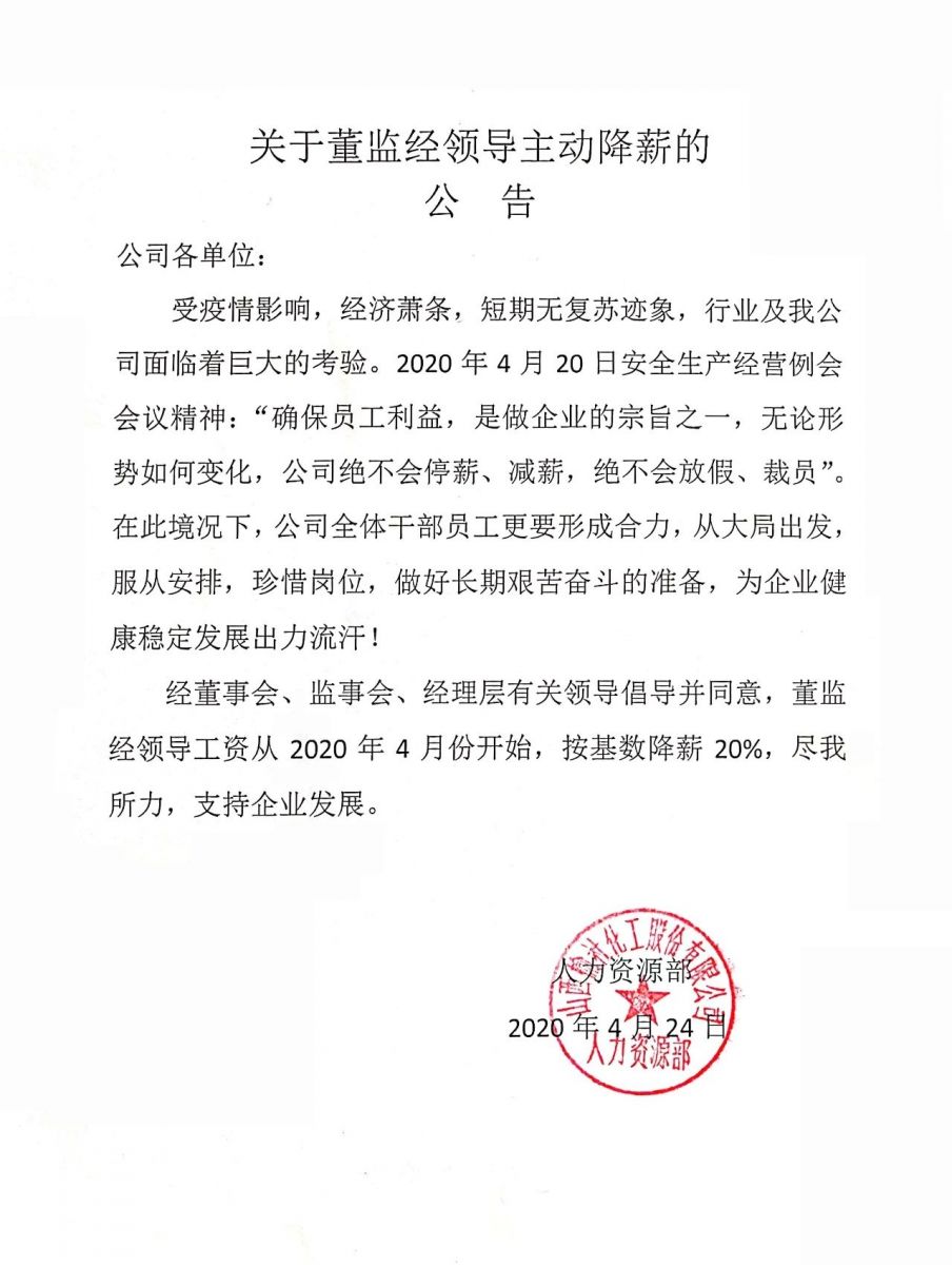 关于董监经领导主动降薪的公告