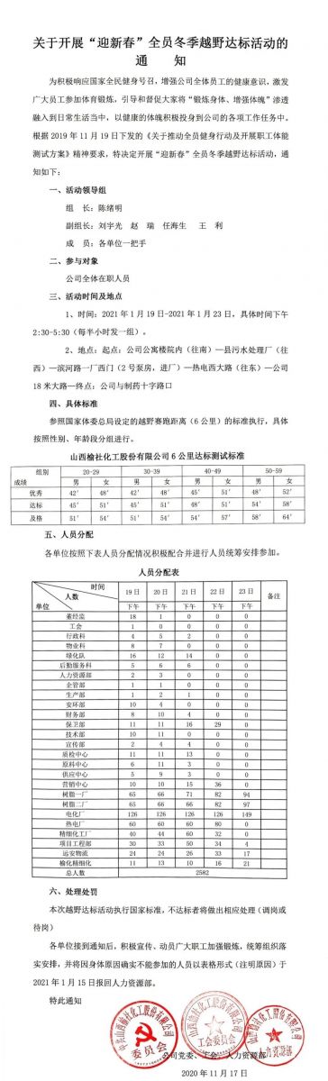 公司关于开展“迎新春”全员冬季越野达标活动的通知