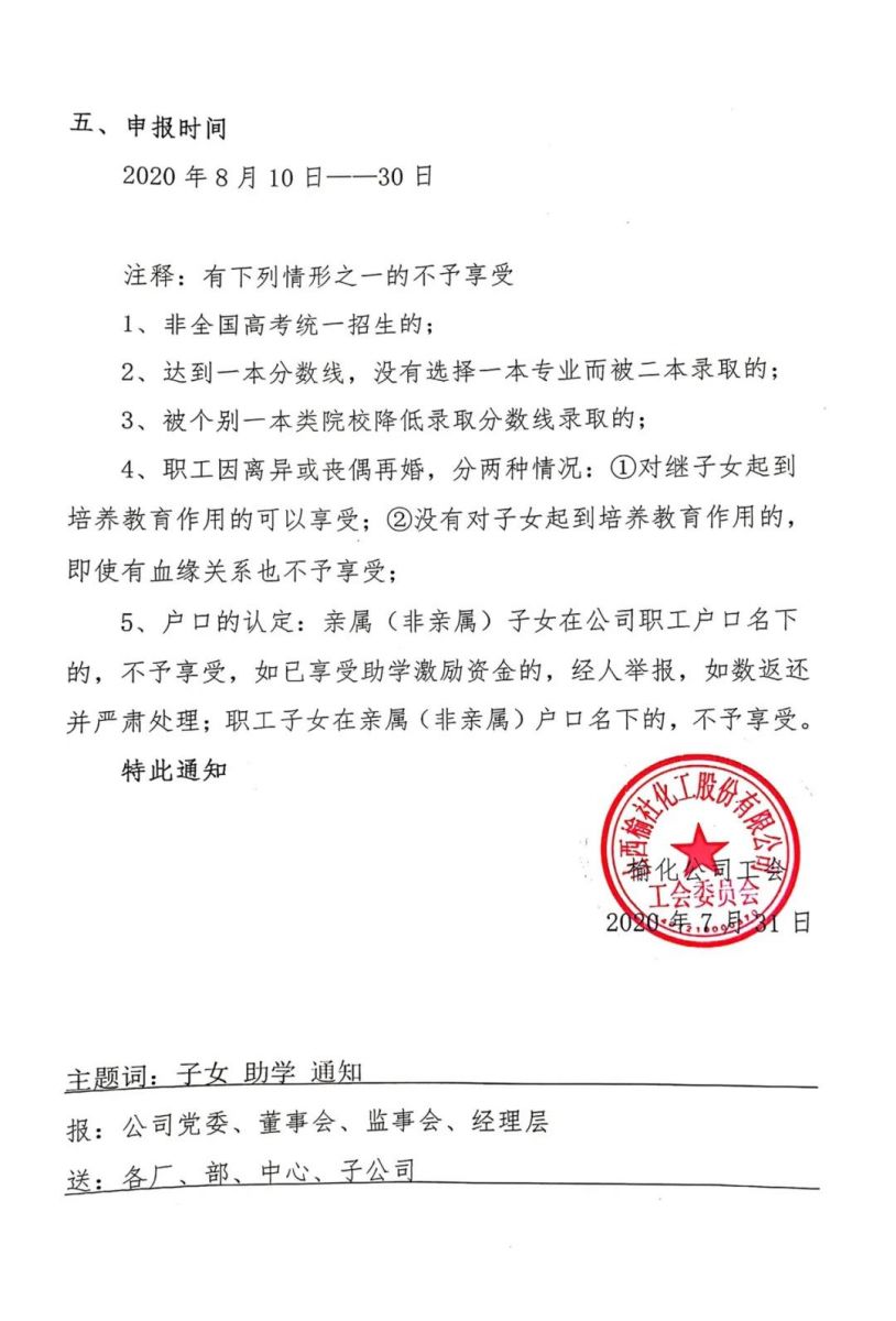 关于开展2020年度职工子女助学激励的通知