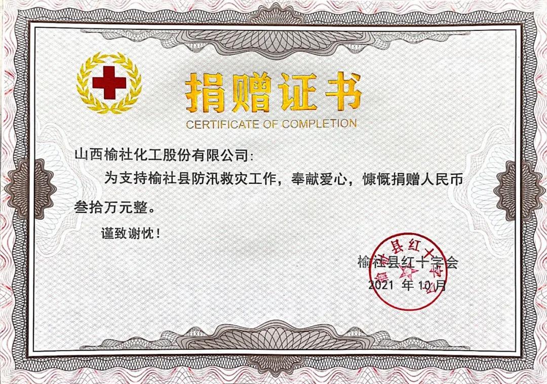 近日,“山西暴雨”登上热搜,塌方、决堤、滑坡,一条条信息牵动着全国人民的心。榆社县也在此轮降雨中遭受灾害,多地出现塌方,部分群众被迫转移。灾难面前同“榆”相助。10月15日,公司向榆社县红十字会捐款30万元,为我县防汛救灾和灾后重建贡献企业力量。