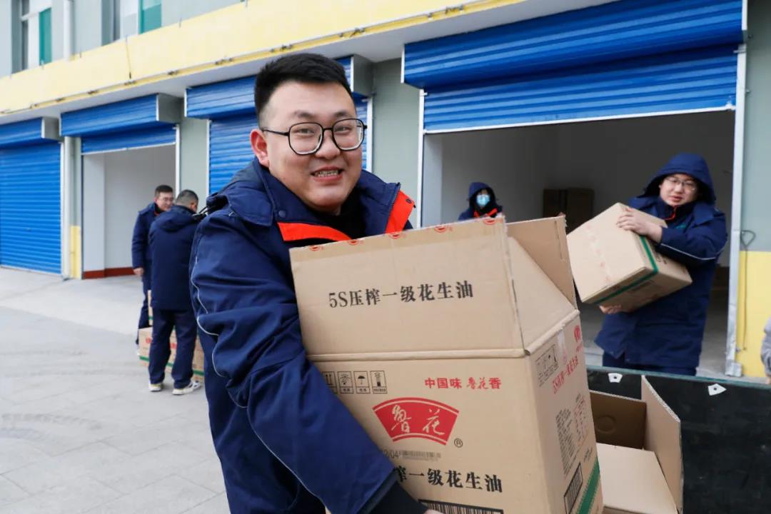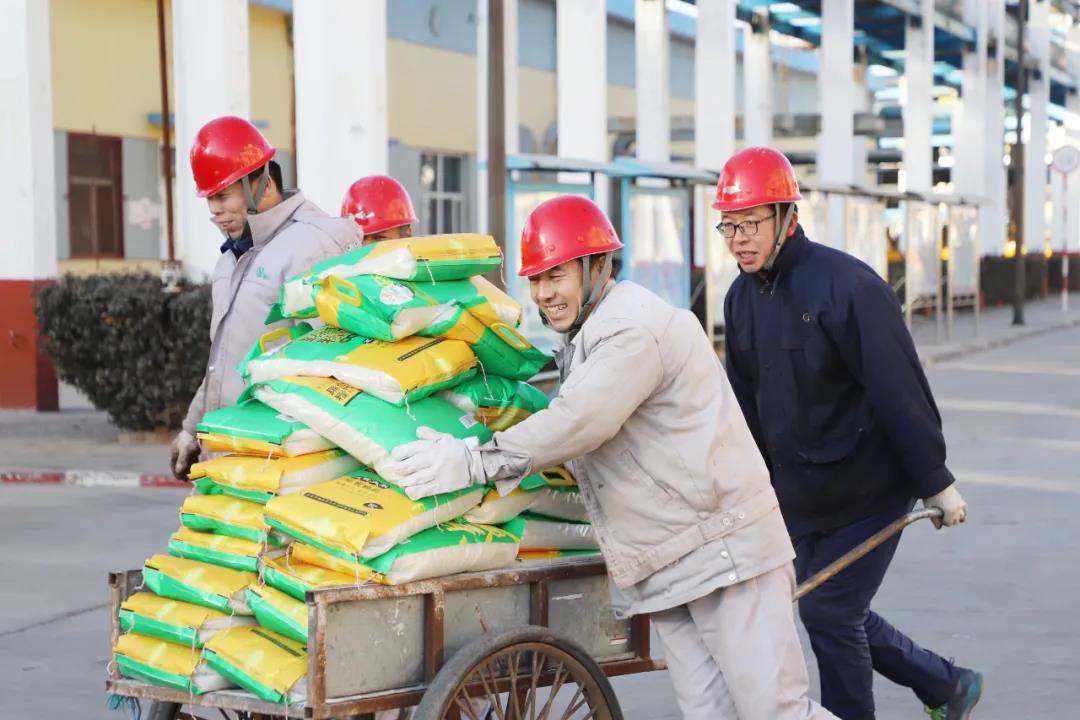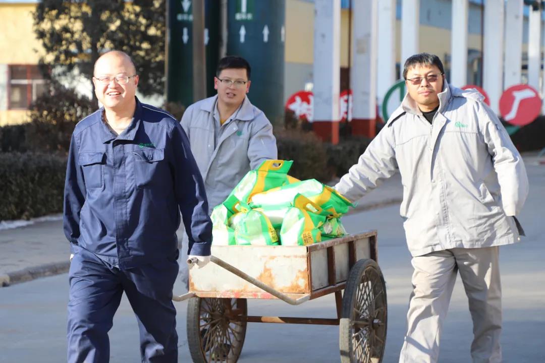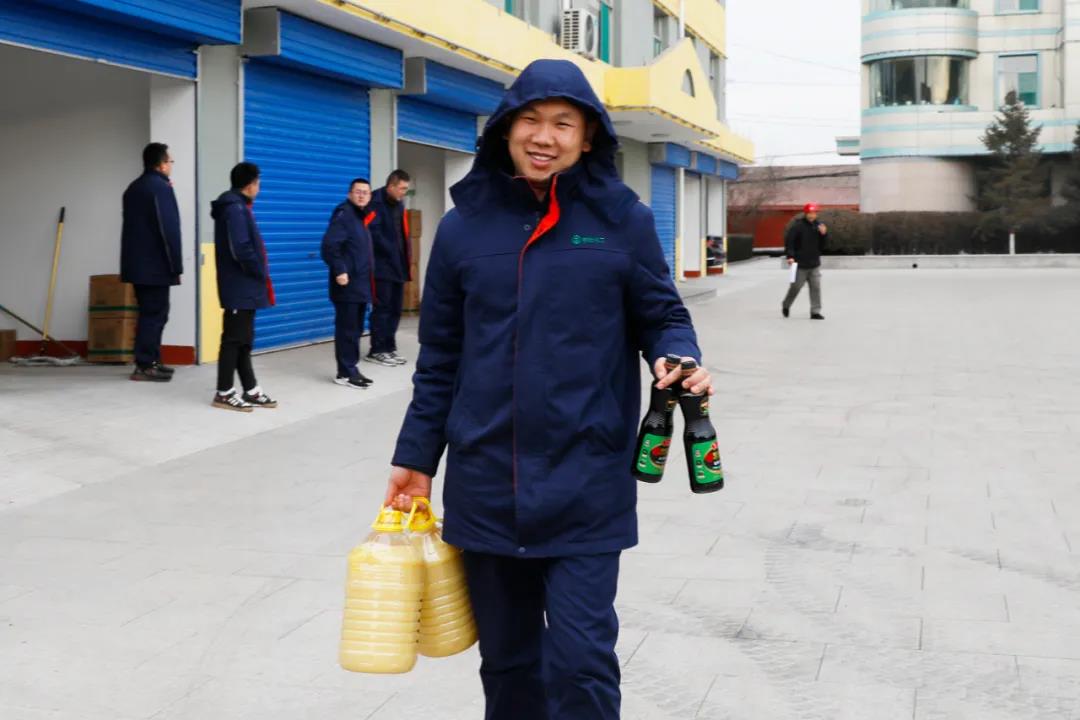 岁末甫至,年味渐浓。1月11日上午,一辆辆满载着温暖和关怀的福利货车款款驶来,为2800多名员工送来了春节福利大礼包。一袋袋优质的五常大米、河套白面,一箱箱鲁花花生油、鲁花全黑豆酱油整齐地摆放到了各个分厂。各厂员工井井有条地排队领取福利,幸福的笑容洋溢脸上,温馨祥和的氛围漫过了冬日的严寒。