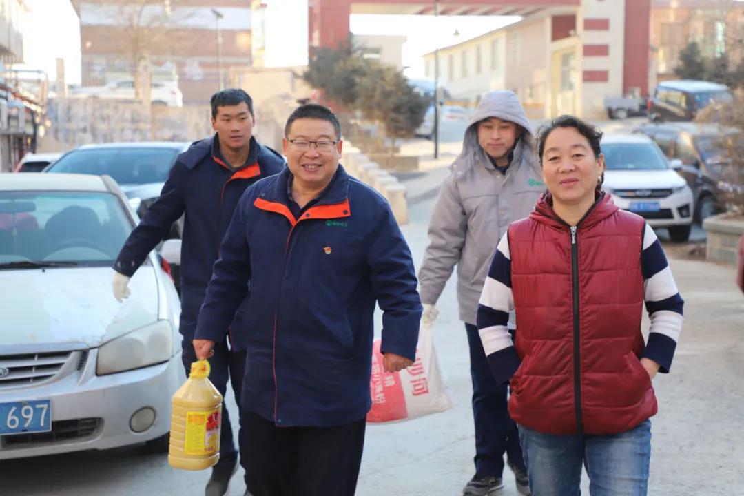 公司领导将慰问品交到家属手中,对员工在公司取得的成绩给予肯定,向他们对子女的教育和对子女工作的支持表示感谢,并提前送上新春祝福。