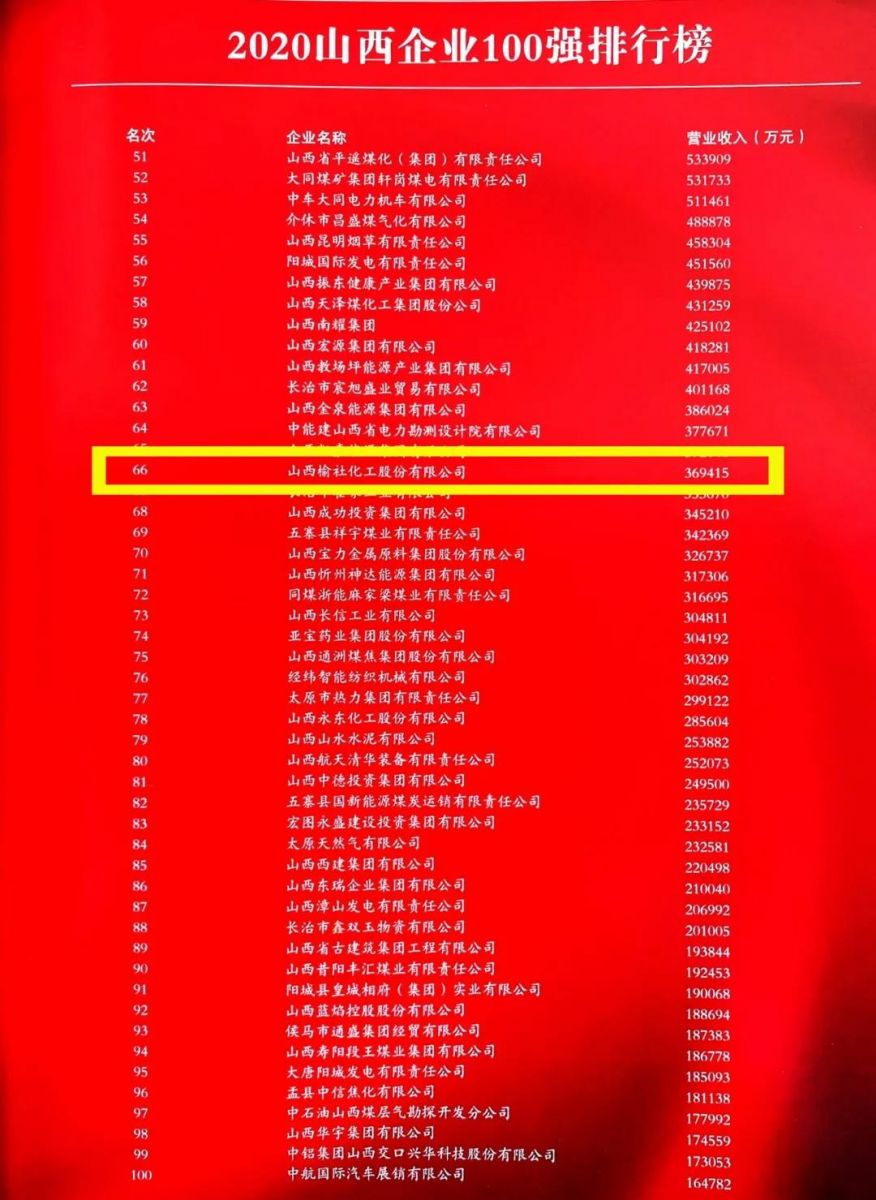 此次,我公司位列2020年山西省100强企业第66位、2020年山西省制造业100强企业第34位。