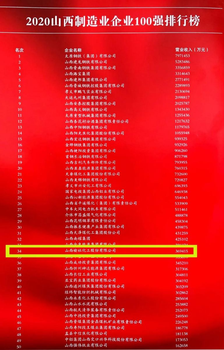 《2020山西企业100强分析报告》显示大型能源重化工企业依然是山西省国民经济的核心,我公司作为山西省大型氯碱化工企业面对国内外风险挑战明显上升的复杂局面,应时而为,强化管理,稳定生产,实现营业收入持续增长,取得了较好的成绩。