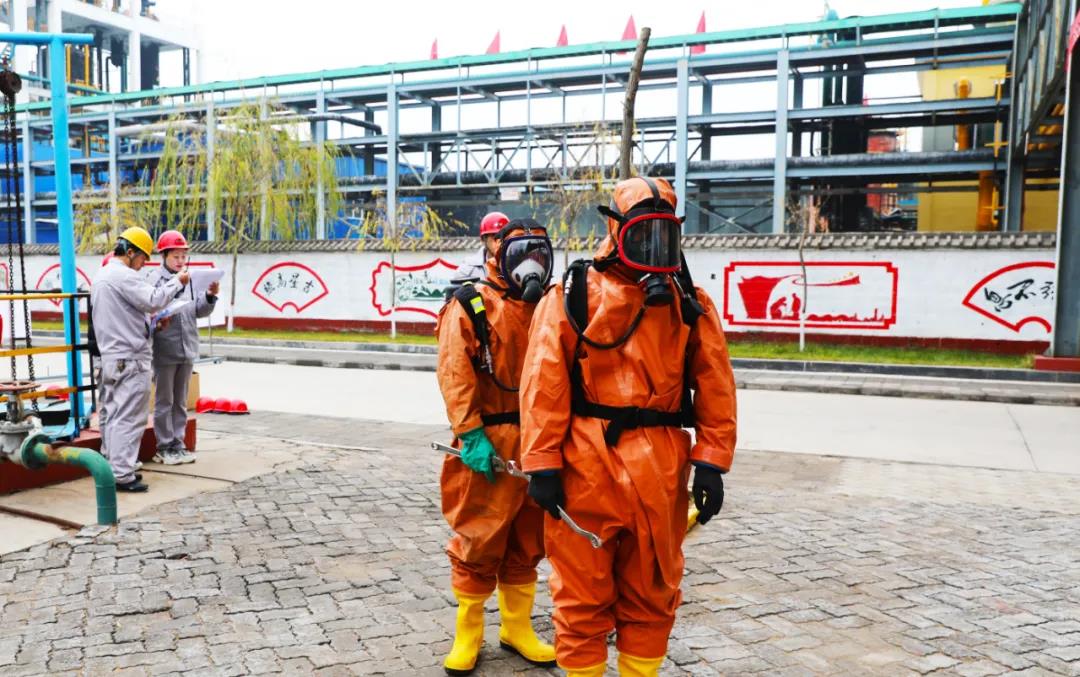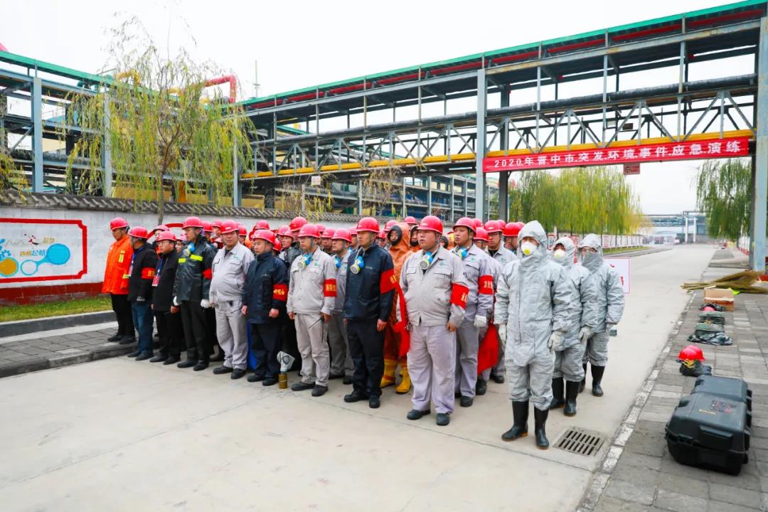 演练假设我公司电化厂液氯贮槽进口管根部阀发生泄漏事故。晋中市生态环境局、榆社分局、公司严格按照演练中的任务,各司其职、协同配合,圆满完成了此次环境应急演练活动。