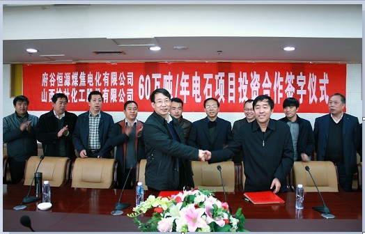 本报记者报道:3月13日,公司与府谷县恒源煤焦电化有限公司在陕西省府谷县正式签订年产60万吨电石项目投资合作合同书。