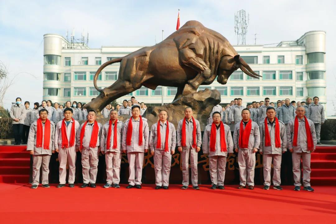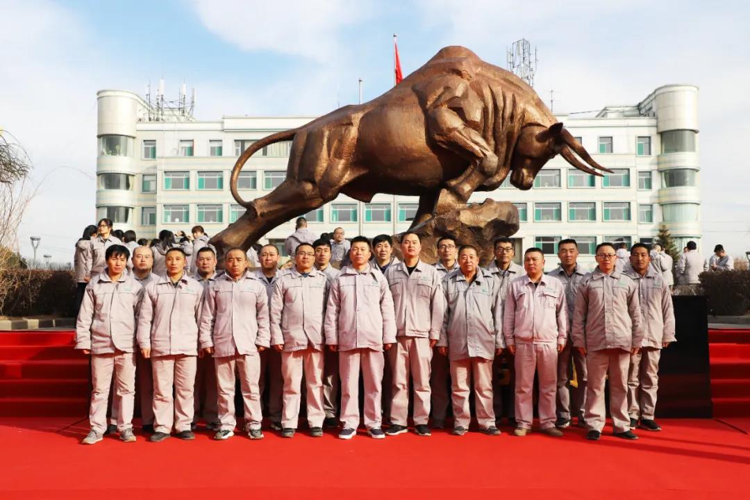 金牛踏春迎盛世,拓荒奋进正当时。2月7日,公司在办公楼前广场隆重举行了升国_旗暨“拓荒牛”雕塑揭幕仪式,庆祝中国共(产)党建党100周年和榆化公司建厂50周年这一历史时刻,纪念创业先贤,传承榆化精神,开启榆化新的征程。
