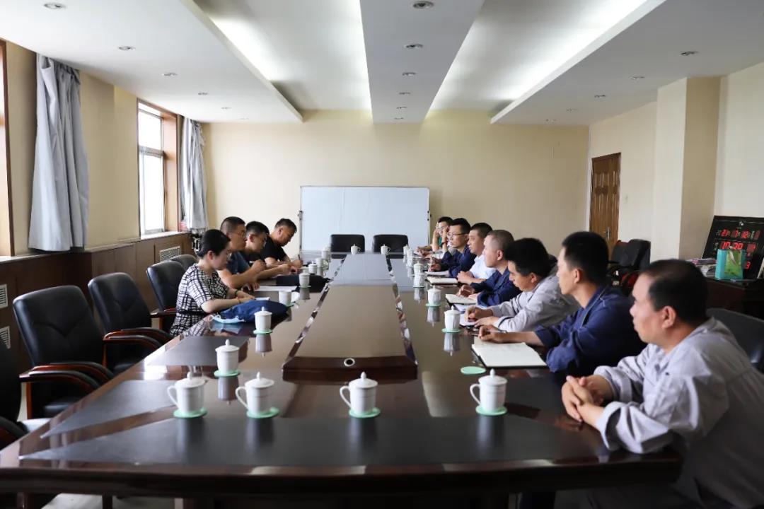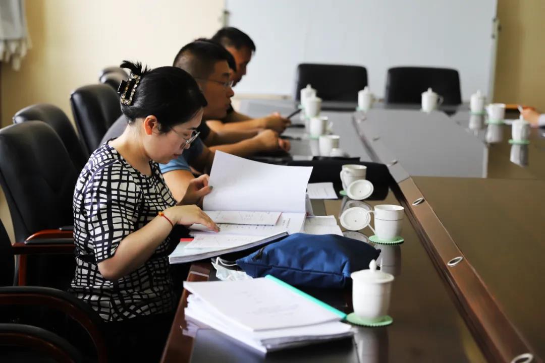 在公司二楼会议室,检查组一行查阅了公司固体废物管理台账,对公司环境管理工作表示肯定,同时指出检查过程中存在的问题。