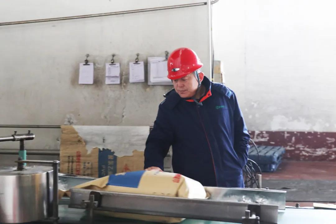 陈波一行深入装置区、包装车间、原料库房等地,仔细检查了设备运行情况,了解了原料、产品库存情况,并就春节期间安全稳定生产的保障工作与分厂干部进行了现场交流。