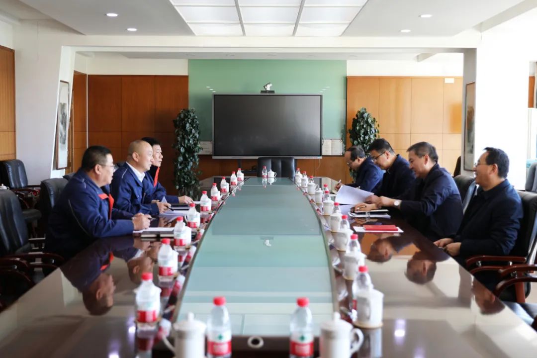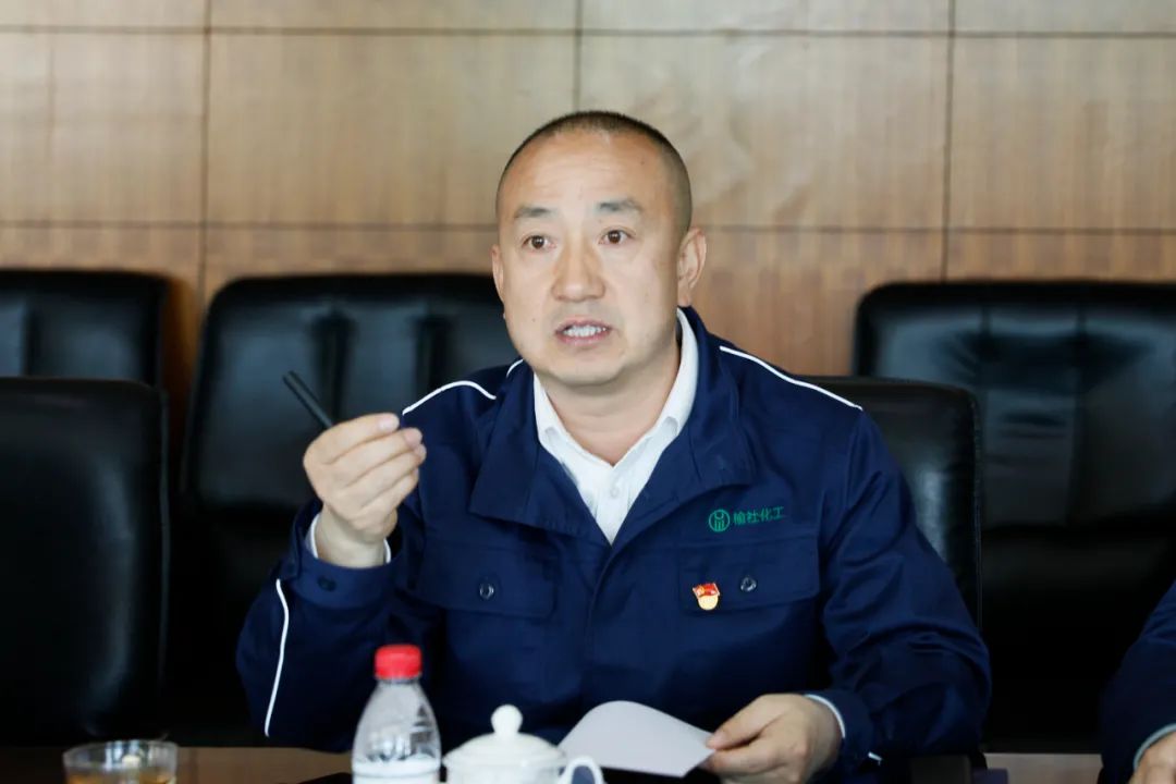 随后,易书记一行与公司领导在三楼会议室召开座谈会。董事长刘俊简要汇报了公司生产经营、民生工作和社会责任等情况。他表示,在县委县政府的大力支持下,榆化公司将更加坚定发展信心,继续发扬敢想敢干的精神,瞄准优质项目,推动高质量发展,争取跨入百亿企业行列,为县域经济腾飞贡献力量。