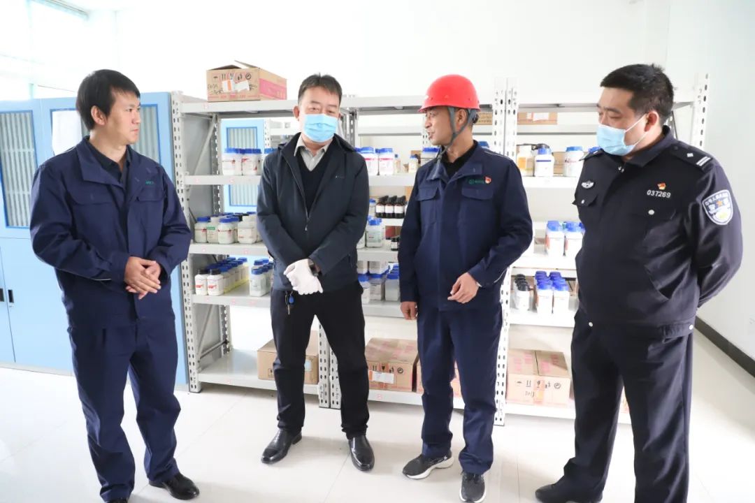 10月20日,晋中市公安局治安支队副支队长岳恒一行重点围绕易制爆、剧毒危险化学品的出入库登记台账、库房监控设备、值守人员巡查记录情况等多方面开展检查工作。公司副总经理任开宇、安环部部长王柱军陪同。