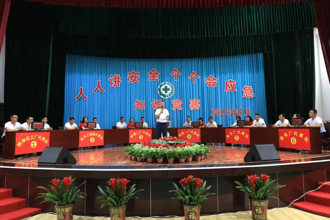 参加本次知识竞赛的有精细化工厂、项目工程部、树脂二厂、树脂一厂、电化厂、热电厂六支代表队,参赛队及答题方阵答题人员由公司随机抽取产生,竞赛包括必答题、队答题、抢答题、风险题四个答题环节。