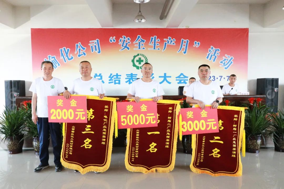 会议宣布“安全生产月”活动先进个人奖(培训教育讲课、活动评论员、安全知识竞赛、应急器材佩戴使用,以上奖励由人力资源部在6月份工资中统一下放),会议颁发“安全生产月”活动先进集体奖(知识竞赛奖、应急预案演练奖,综合排名奖)。、