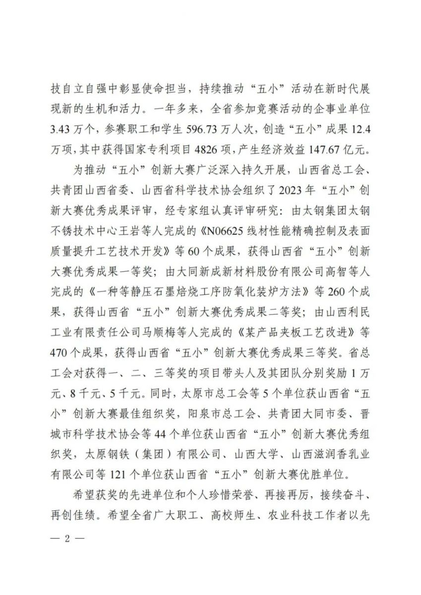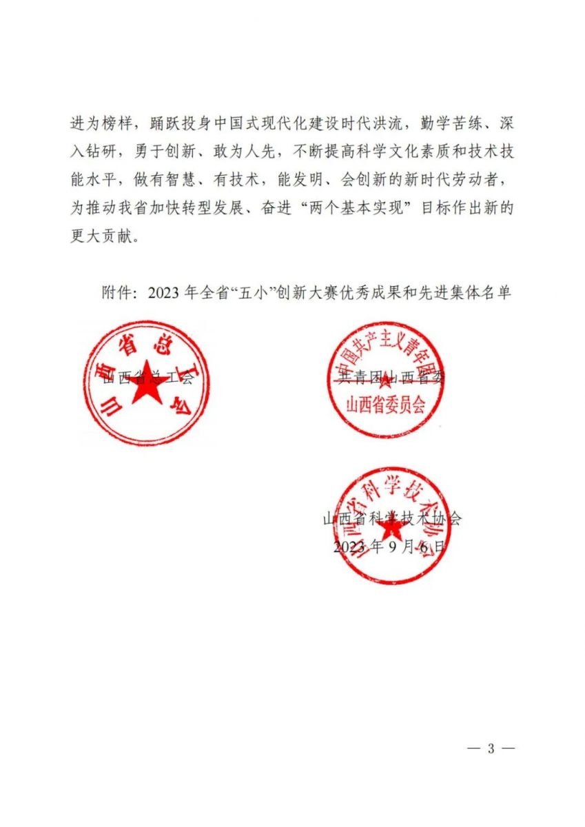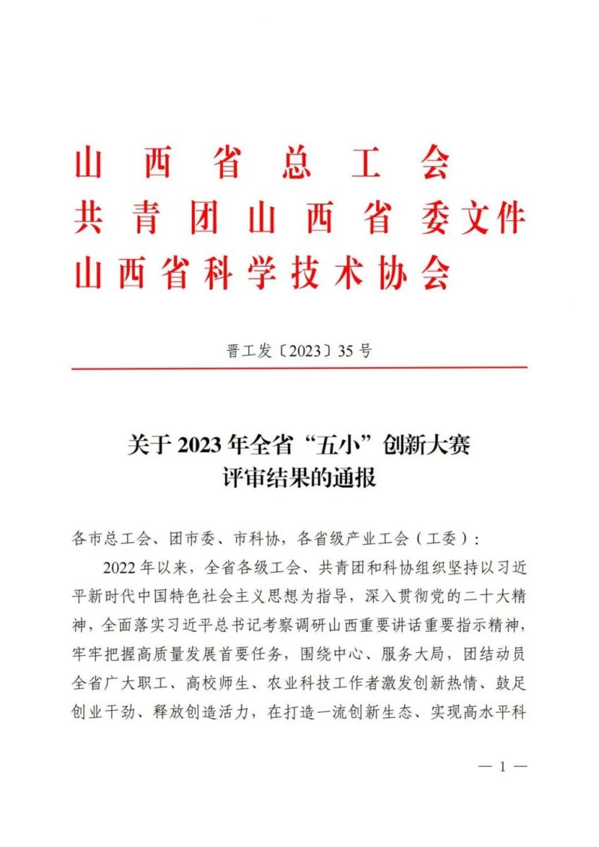 近日,山西省2023年“五小”创新大赛优秀成果评审结果揭晓,榆化公司喜获山西省“五小”创新大赛优胜单位。山西省2023年“五小”创新大赛由山西省总工会、共青团山西省委、山西省科学技术协会联合举办。公司工会按照市县总工会部署积极开展此项活动,广泛组织职工参赛,充分展现了干部员工创新创效的热情和能力。