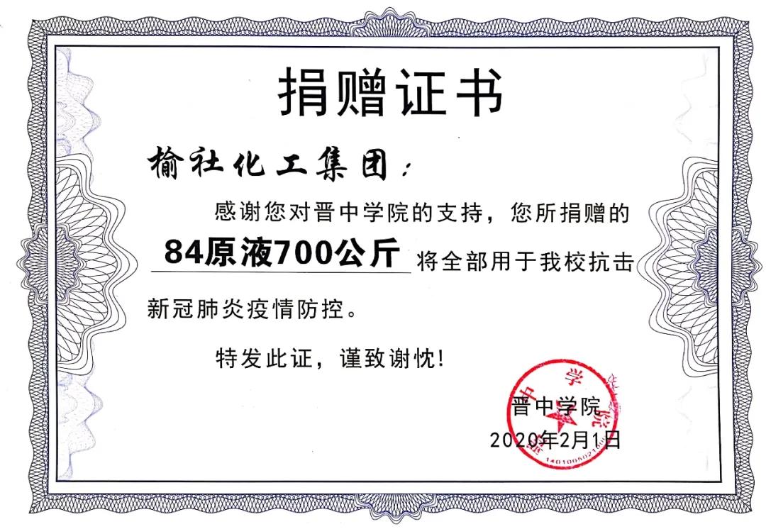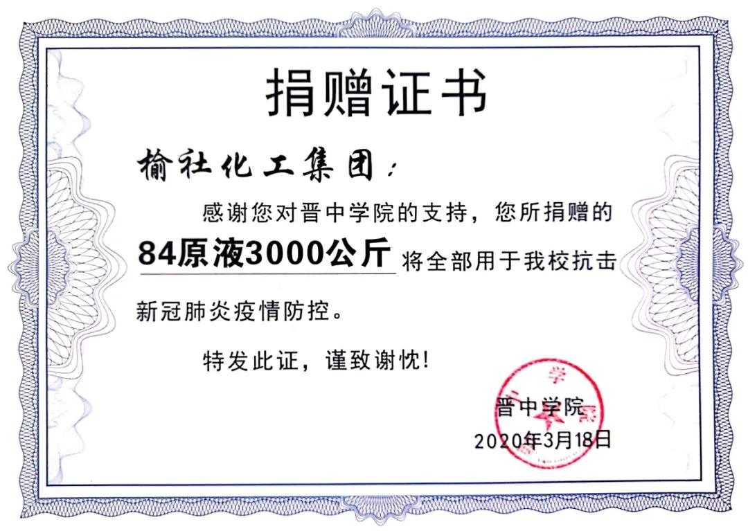 为保障学校顺利复学、学生安全上课,3月18日,我公司再次为晋中学院捐赠3000公斤次氯酸钠消毒液。学校领导表示:由衷感谢榆化公司在困难时刻两次为学校疫情防控提供雪中送炭的帮助,这批消毒液将全部用于学校疫情防控工作,成为学校复学的重要物资保障。