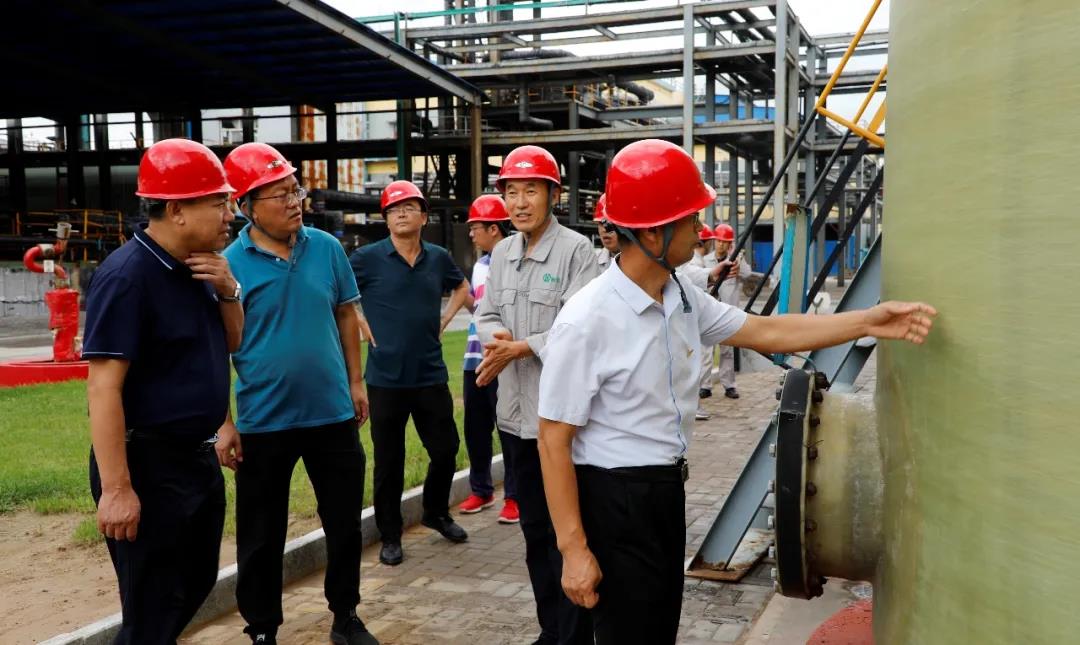 8月18日,晋中市财政局马永庆科长、市工信局彭鹏科长、县财政局副局长阴俊峰、县工信局局长张建、副局长吕永红等一行到我公司对日产500吨次氯酸钠项目进行现场核查。公司总工程师田建平、技术部副部长刘裕陪同。