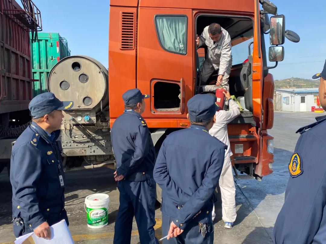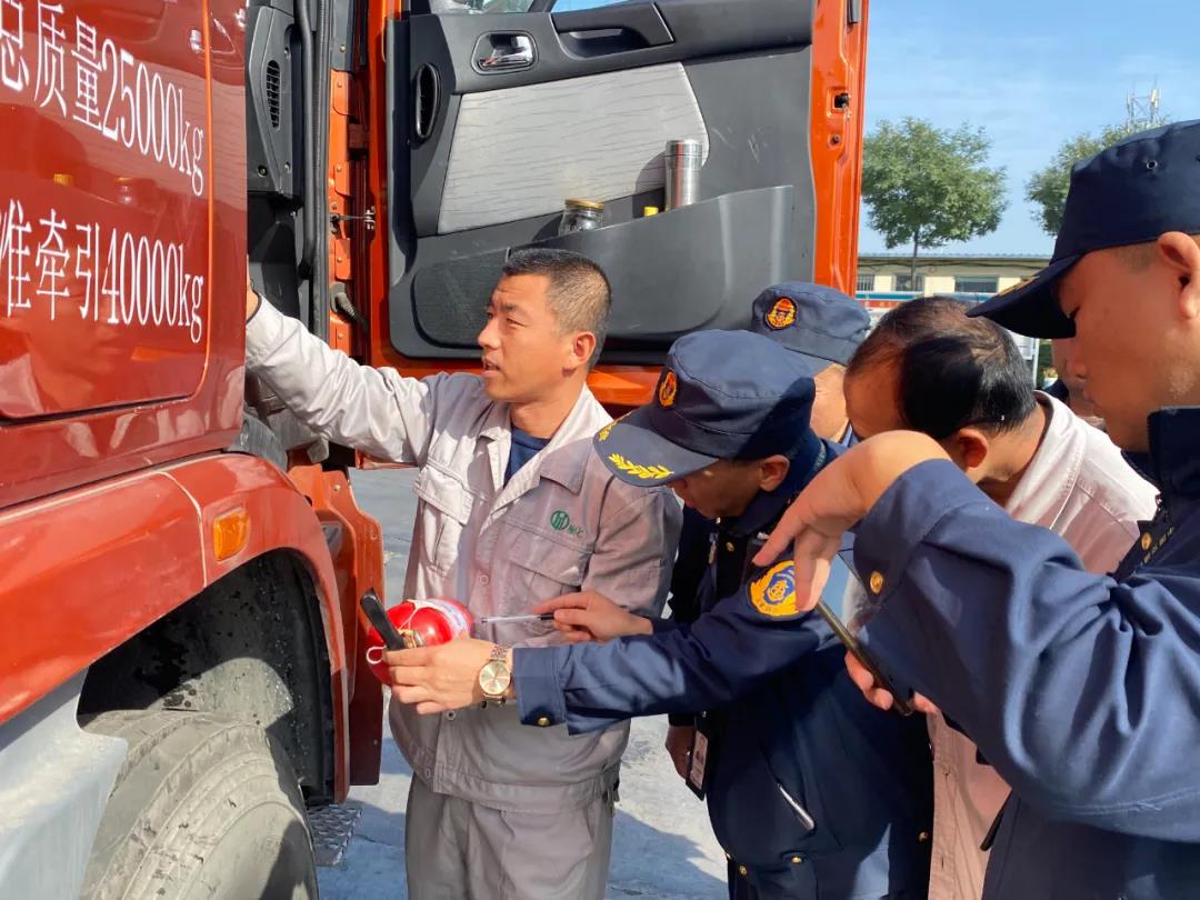 检查组一行人对院内停放车辆的消防安全器材、安全标识、标牌等,车辆需携带的一书一签、安全卡、电子派车单进行了检查;检查人员还查看了远安物流对驾押人员的安全培训教育台账,并对车辆的运营情况进行了详细检查。