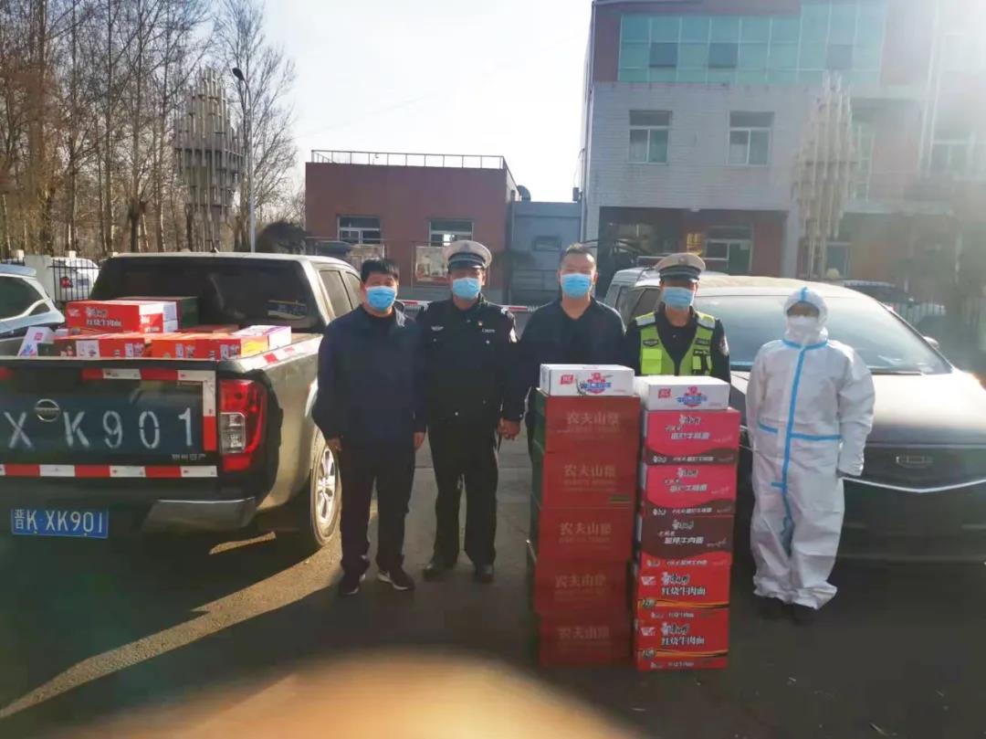 远安物流安全科科长周杰、市场科科长岳二军分别带队前往榆社高速北口、高速南口、高速东口慰问防疫一线的执勤交警、医护人员,为他们送去了矿泉水、火腿肠、方便面等食物,为疫情防控提供了强有力的物资保障。
