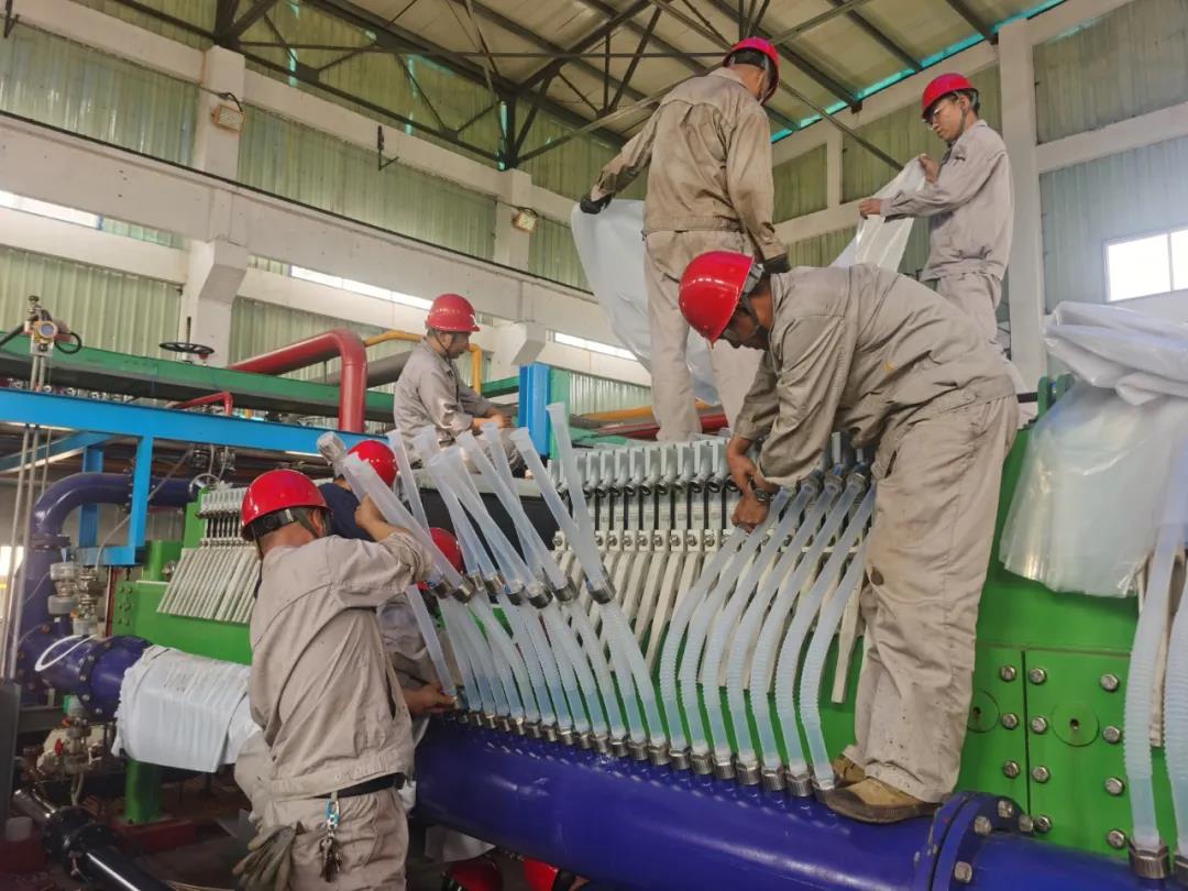 效率就是效益。为保障电解槽生产稳定运行,提高电解槽电流效率,降低运行成本,9月13日-15日,电化厂组织对5万吨/年烧碱B#电解槽进行换膜工作。