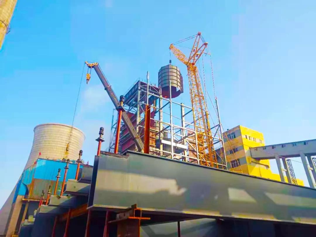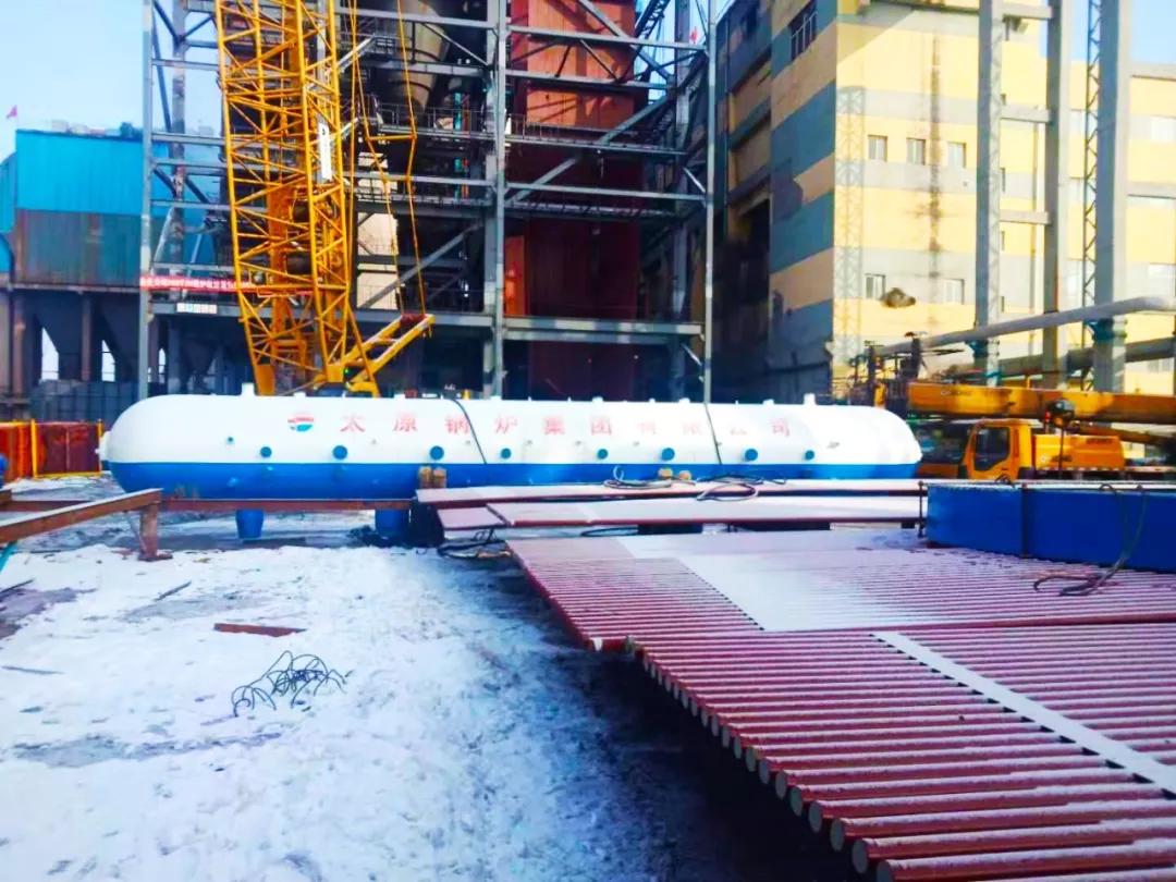 风分离器安装完成,钢结构安装完成,锅筒起吊就位。