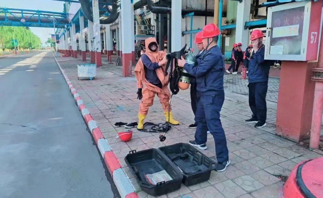 第二,开展火情演练。本次演练模拟一期混脱发生火灾,相关岗位人员按照火情演练流程立即赶赴现场展开扑救工作。此次演练主要检验了员工应急处置能力、员工之间配合默契度以及防护用品穿戴、消防器材使用的熟练程度。