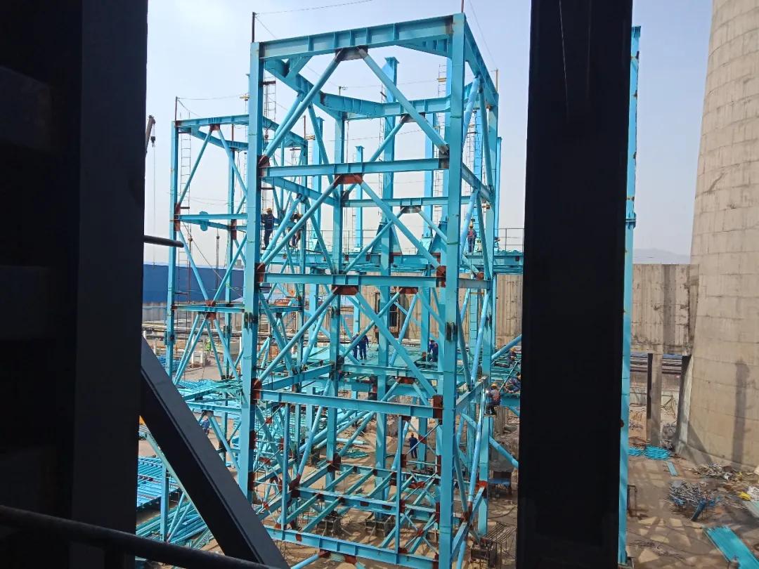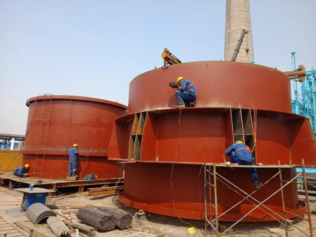 两台返料槽完成,两台旋风分离器抓钉正在焊接