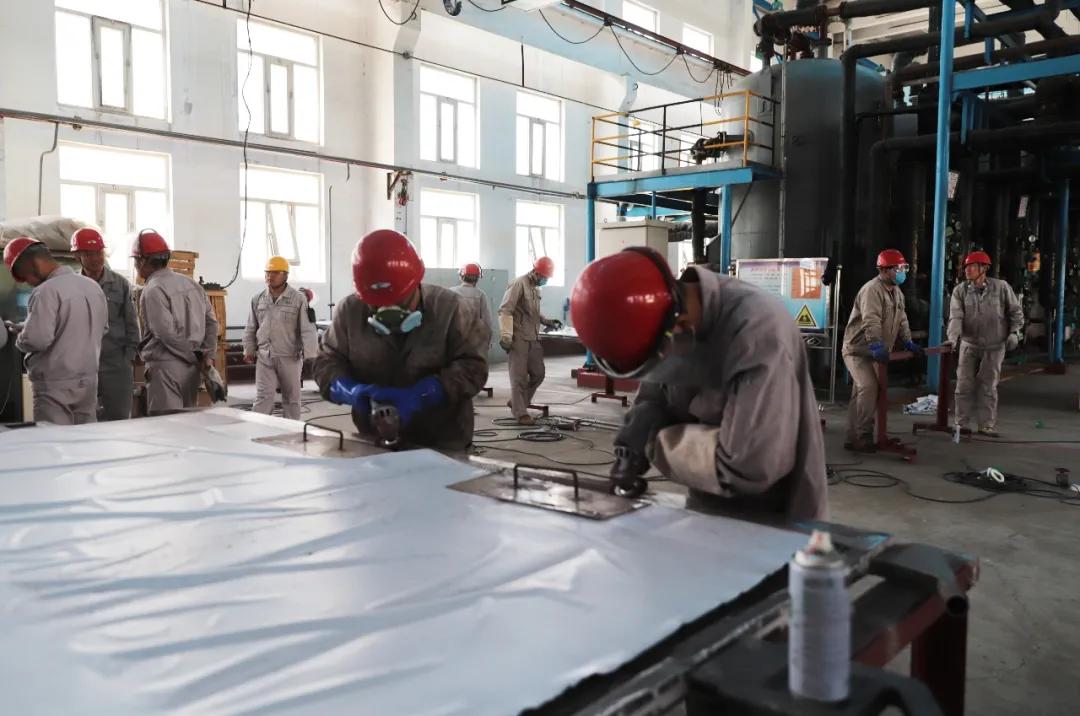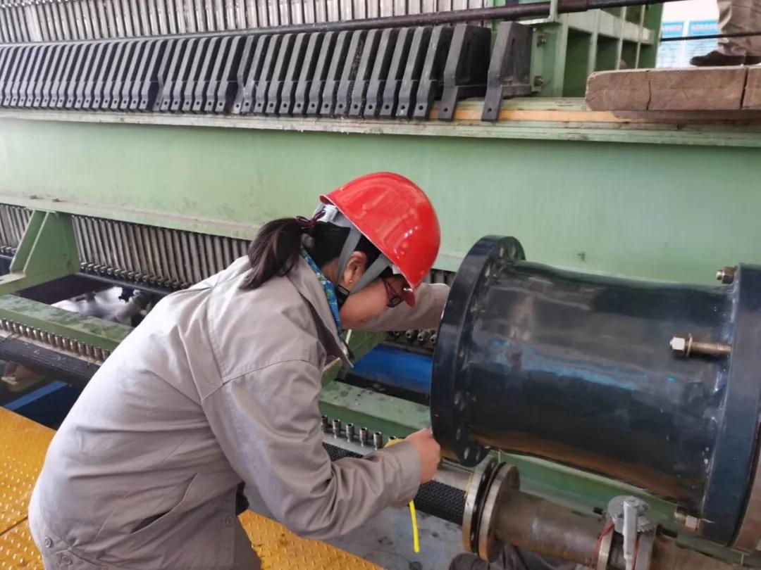 检修开始后,工人师傅们依据检修方案,分工有序、各负其责,将检修任务进行的井然有序。分别有以下几个方面:停槽置换排液系统隔离、铜排拆除、电解槽进出液管拆除清洗安装、旧垫片和旧离子膜拆除、电解槽打磨、粘帖新垫片、电解槽各部位检查、冲洗电解槽、涂抹硅胶、泡膜养膜、电解槽贴膜组装等,每一个环节都不能马虎,每一个细节都有专人负责检查验收。