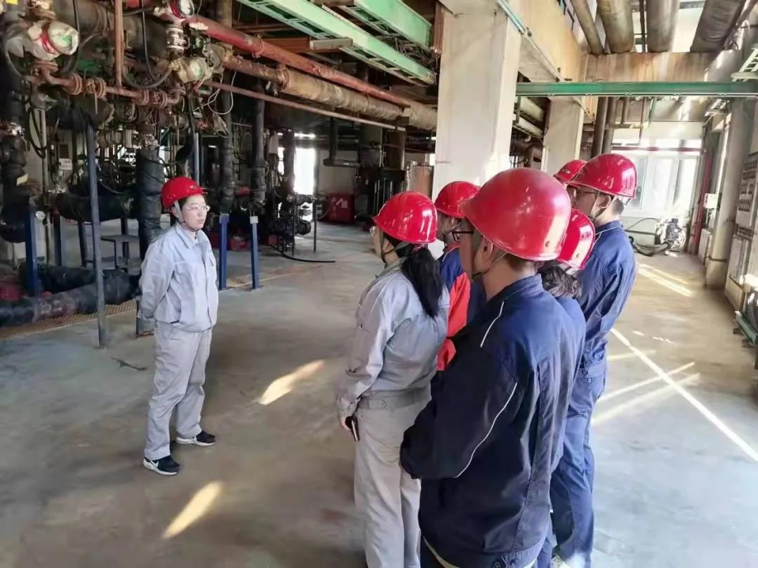 杨爱香采用直观明了的现场授课方法,带领大家将氢化系统工艺流程、设备结构、物料走向的理论知识与现场操作结合起来,使员工对工艺流程领悟更加透彻,物料危险特性更加了解,现场操作更加熟练。