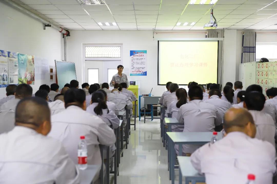 为深入开展好全国第十九个“安全生产月”各项活动,全面落实好“消除事故隐患,筑牢安全防线”主题的各项要求,公司组织各厂车间(工段)干部对员工进行了一次检修作业票证培训。活动期间,组委会从各单位随机抽取一名车间(工段)干部对本单位员工进行一次检修作业票证培训,内容为实际检修作业、票证办理流程,授课人员详细讲解一份检修作业(大、中修)和相关作业套票。